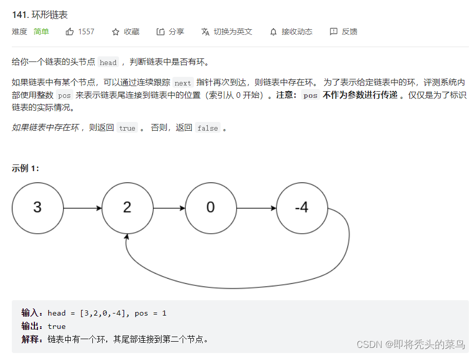 思路:还是老样子快慢指针,两指针相遇就是有环
