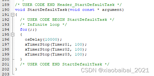 freeRTOS Software timer for , It is realized through a task used inside the system , Namely prvTimerTask function , The mission is timers.c The document defines , It is generated by the system itself , Users can leave it alone .