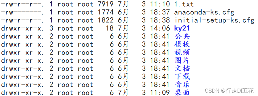 for example : Under current directory KY21 Of The owner is rwx=7 ; The genus is r-x=5; Other users are r-x=5
