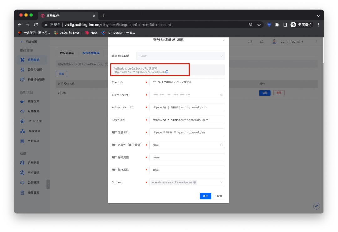- 从 Zadig 系统中获取 Zadig 系统的回调地址